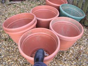Here you will see, not only how cheap the seeds were but the answer to my earlier post about my coffee envy although I am yet to buy a very small flask. My theory is that I will make my coffee before I leave and pop in my school bag and drink it on the train on the way home. An easy end to my coffee envy! Below are some pots I aim to grow potatoes, carrots and parsnips in whilst encasing them in old net curtains from British Heart Foundation or other good retail outlets of equally charitable status. Mum gave me these so they were free and I’ve heaps of home made compost all at the ready. The gravelled area is where dearly beloved is going to build himself a greenhouse, although he’s not sure from what just yet!