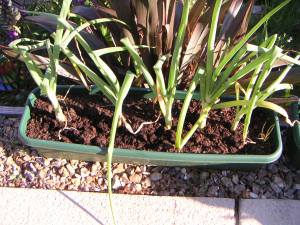 The onions are just about OK, they are growing in flower pots. We had an amazing time tonight as one of my potato plants was looking a bit dead. I emptied out the growing bag and it was totally filled with little potatoes. I found out how dry the compost was and have increased the amount of water to my potatoes. It’s hit and miss and I’m not sure how growing things in buckets and pots will work in the end, but I’m having so much fun doing this.