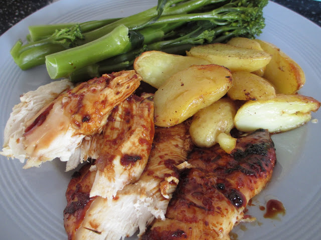 Now don't get me wrong, I enjoyed this, but put this in front of a Janner and I don't think this is the Sunday roast they were thinking of. The sticky sauce was a delicious combination of honey, ginger and garlic but I felt it masked the natural taste of the chicken. I like my Sunday roast with all the 'trimmings' of stuffing, heaps of steamed seasonal veg, some gravy made from the giblets and if I'm using new potatoes then I like them lightly boiled with a sprig of mint.