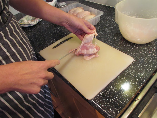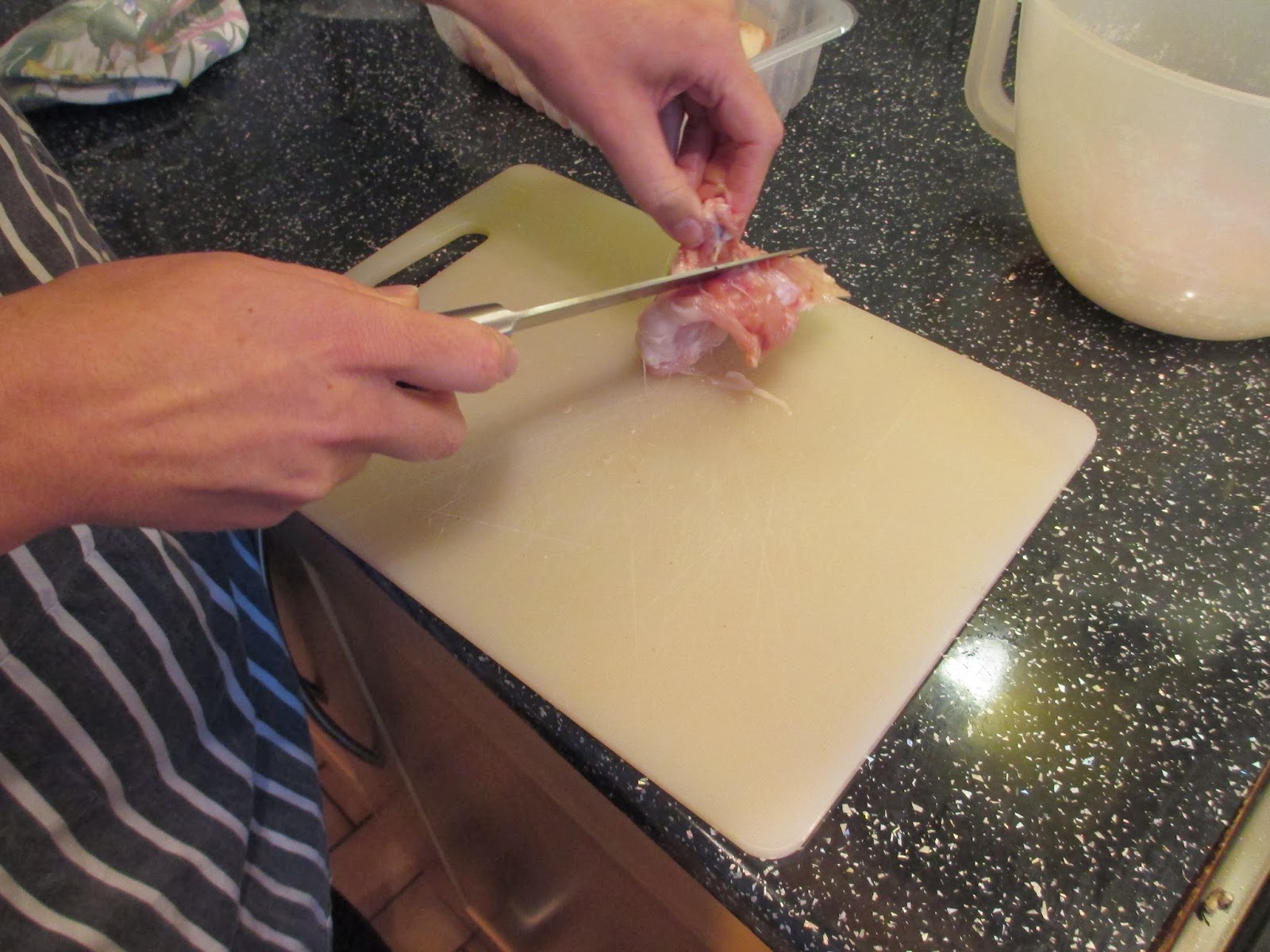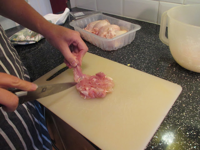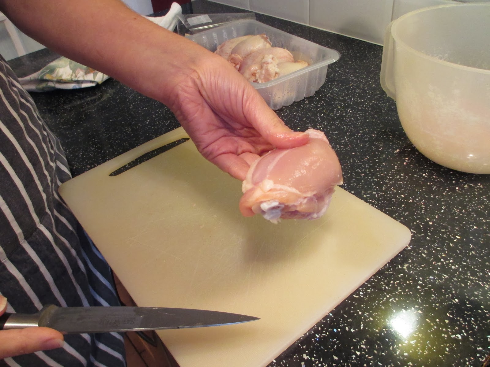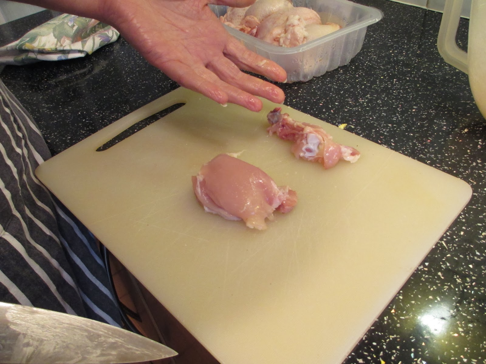 I'll start by sharing how to skin and bone out a chicken thigh. (Chicken thighs can be bought for £1.50 a kilo and that's a bargain).