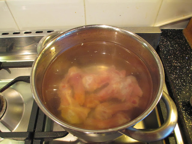 We are told all the time that we can still eat meat if we eat the cheaper cuts but so often we have no idea what to do with them. My mum, unusually for a women in her time, worked as a butcher. And yes, she could carry sides of meat over her shoulders! You didn't argue with her! So, with her being a butcher, I was perfectly used to butchering meat myself and I'm not squeamish when presented with an oxtail or tongue. Skinning and boning out chicken is fiddly but means, once you have acquired the skill that you can use cheaper cuts. If you have children, you may find that they don't like bones so being able to bone out a chicken or leg of lamb means you will have less fuss when you feed them. The current trend for boneless chicken breasts means some where, a lot of chicken has gone to waste.