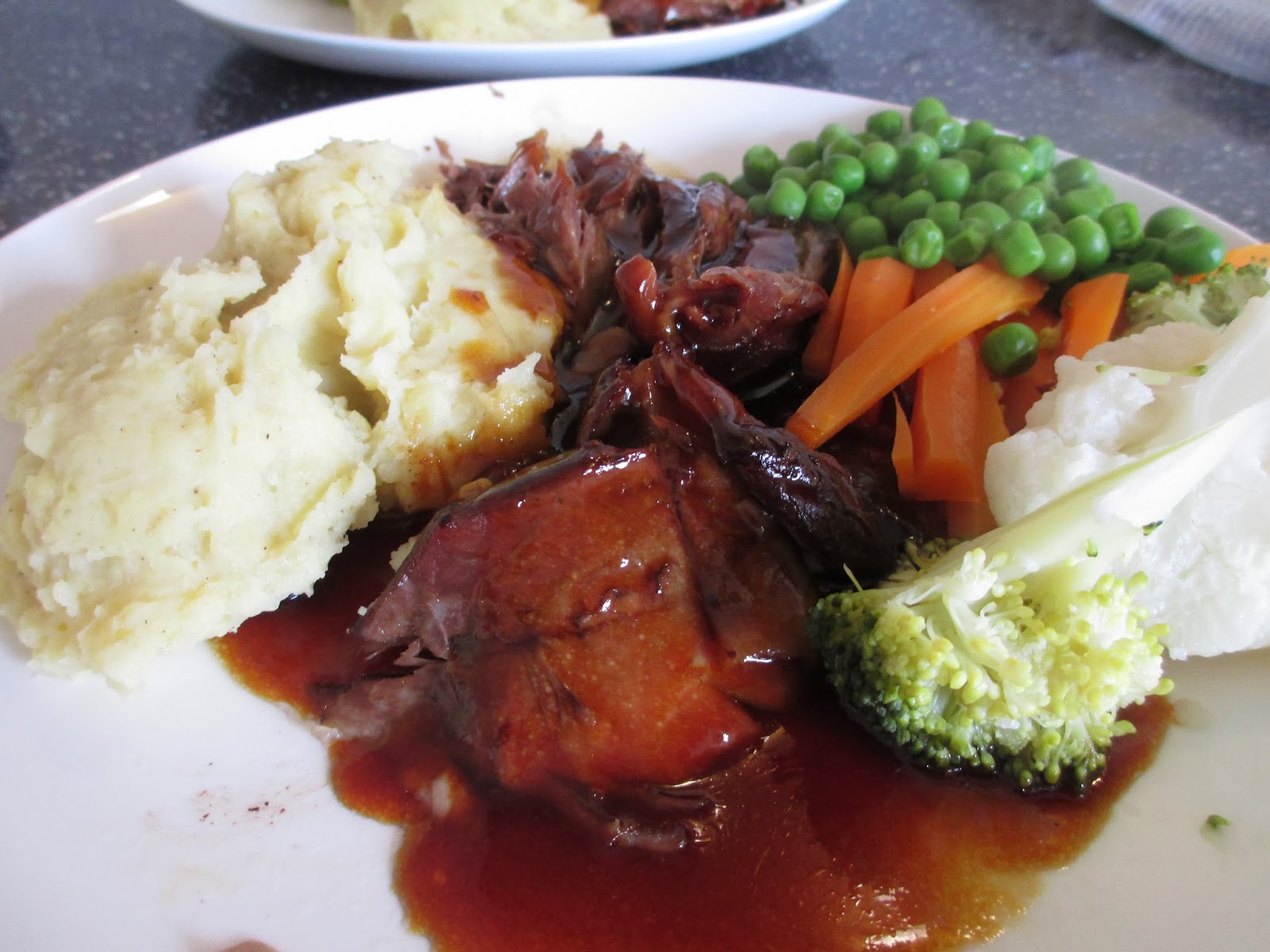 The end result is meat so tender that I could have carved it with a spoon. I poured the cooking liquor into a sauce pan, mixed 1 tablespoon of corn flour with some water, stirred it through and then stirred it over the heat until it thicken slightly.