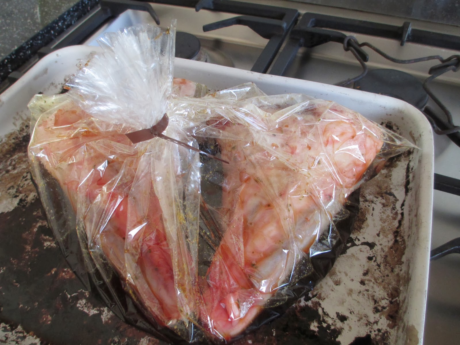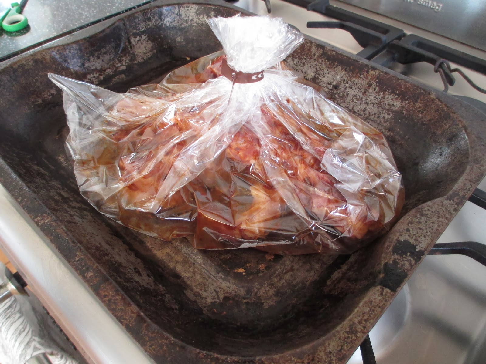 Combine all of the above and marinade the meat for a few hours. I used the roasting bags that I had left over from Christmas.