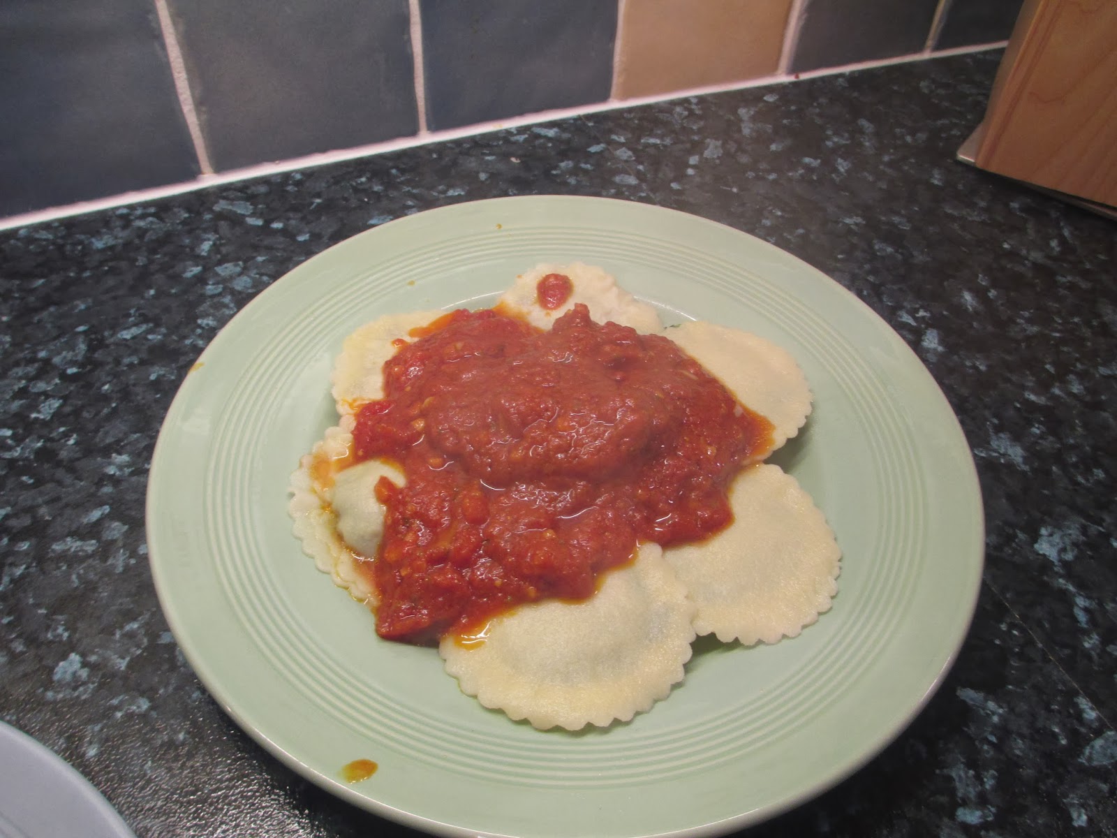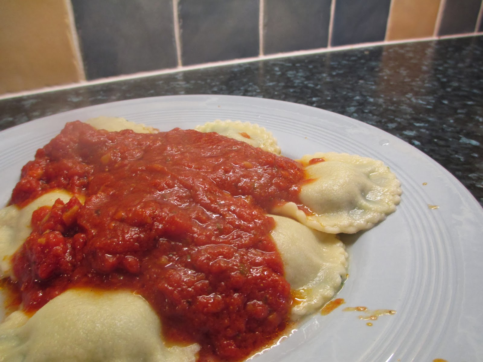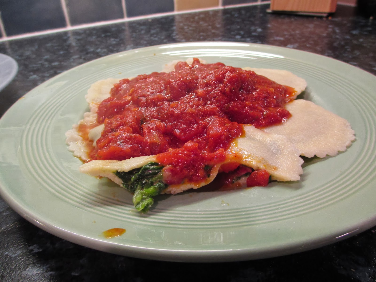 Here are the spinach and 'ricotta' gluten free space ships all ready for a generous helping of home made tomato sauce.