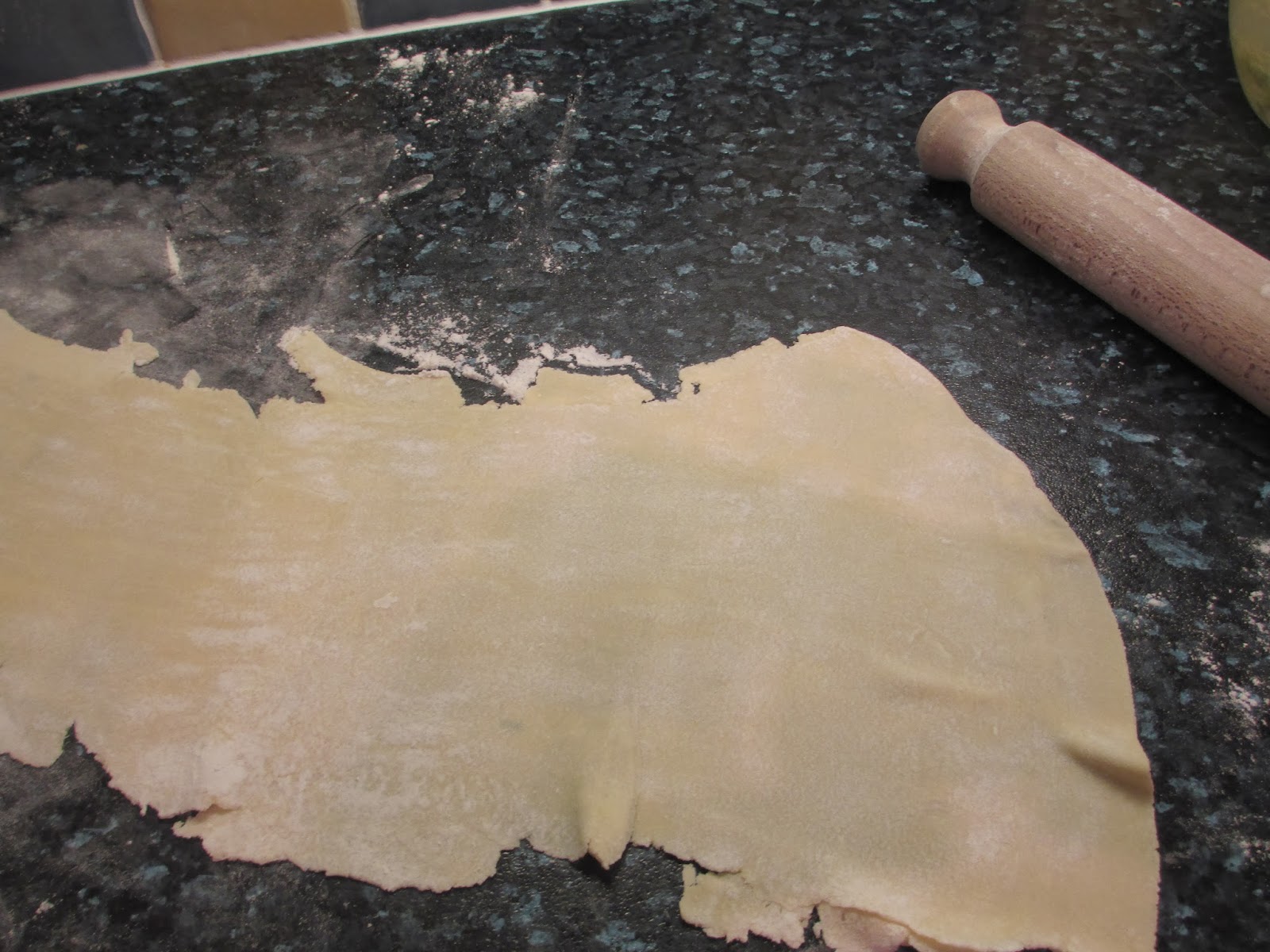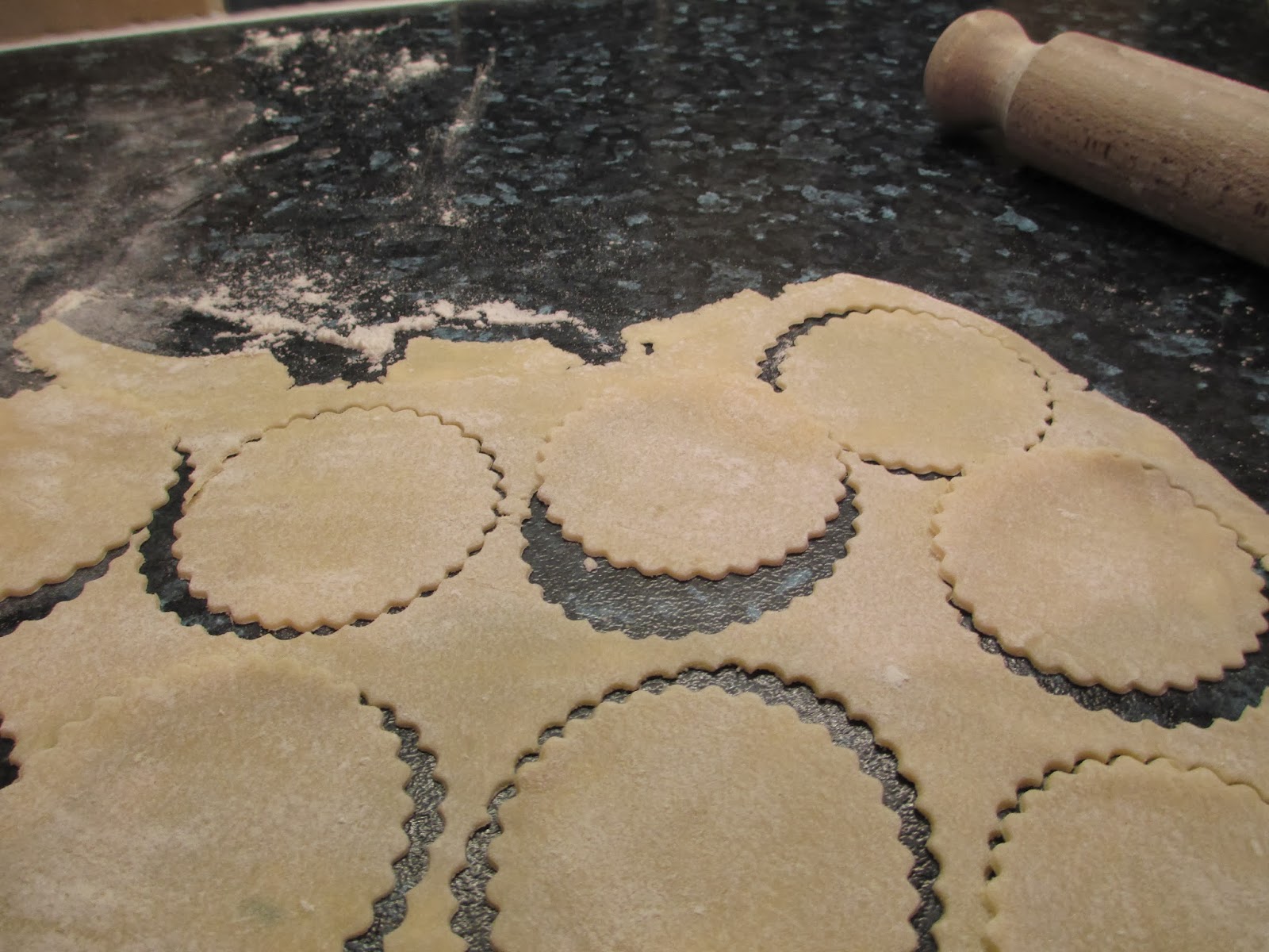 I don't have a pasta machine or any fancy pasta cutters so I just used my rolling pin and a small biscuit cutter.