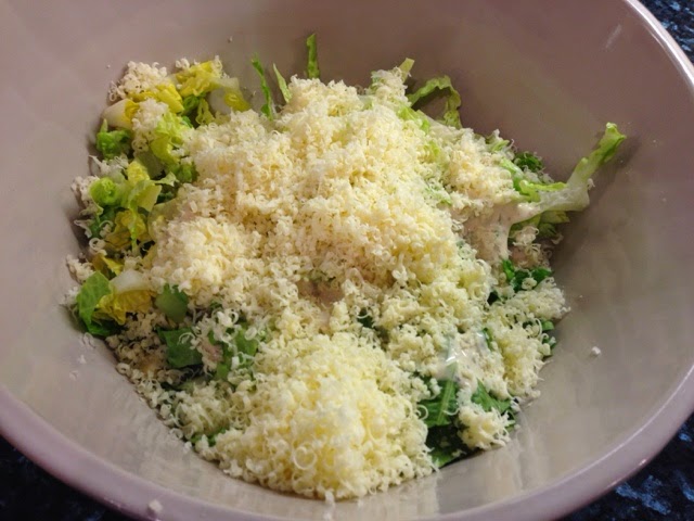 Stir the bread crumbs, grated cheese and croutons together and arrange on a plate.