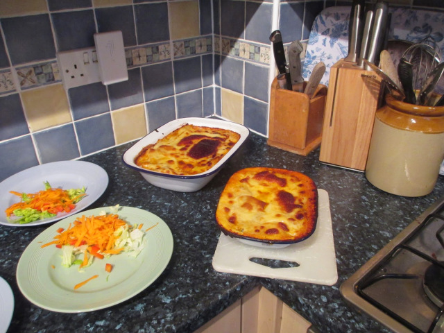 • Place the casserole dish on a baking tray, in case of spillage and bake for thirty minutes. I usually take it out after 25 and leave on the side for fifteen minutes before serving. Other wise it’s just too hot to eat.