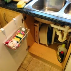 I bought the little rack on the back of the door for £1.99 in B&M and that has the dishwasher tablets, my rubber gloves, disinfectant and scrubby sponges. I can now get to my washing up bowls and my vases have some where to live. I moved them there after giving them a good wash and polish and put them away.