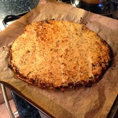 We ate it with some salad. It’s hugely filling. Here’s my findings about the recipe. Be a bit braver with the food processor as I felt the cauliflower could be finer. Mozzarella and tomato sauce is really all you need as it needed a melting stickier topping. (I hate gooey cheese so not for me) Don’t be shy with the tomato sauce as it all sinks in.