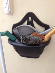 My back porch has bits and bobs every where. Cleaning brushes in stacking boxes, bits for the garden such as my dibber for bulbs. There’s also the laundry liquid and conditioner just sitting on the floor next to the washing machine.