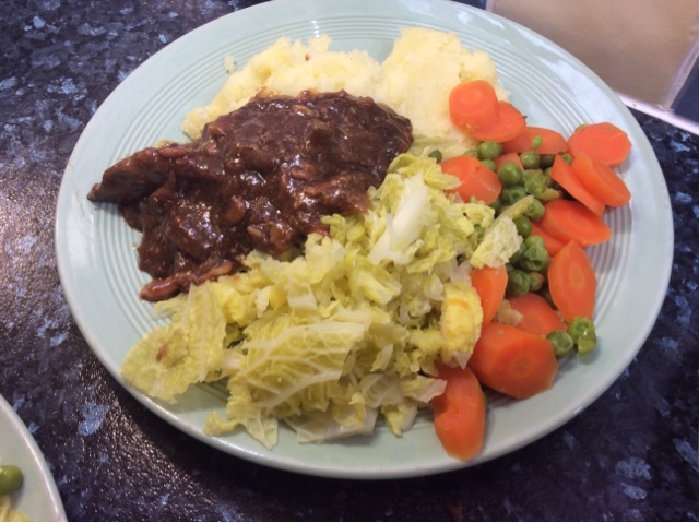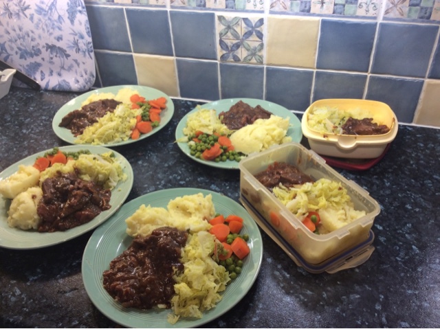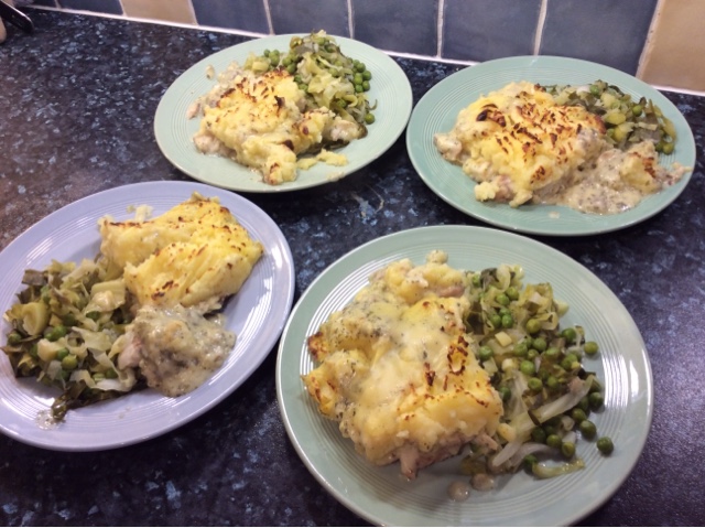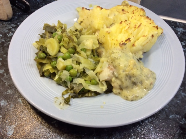 Fish pie and buttery greens 87p per portion