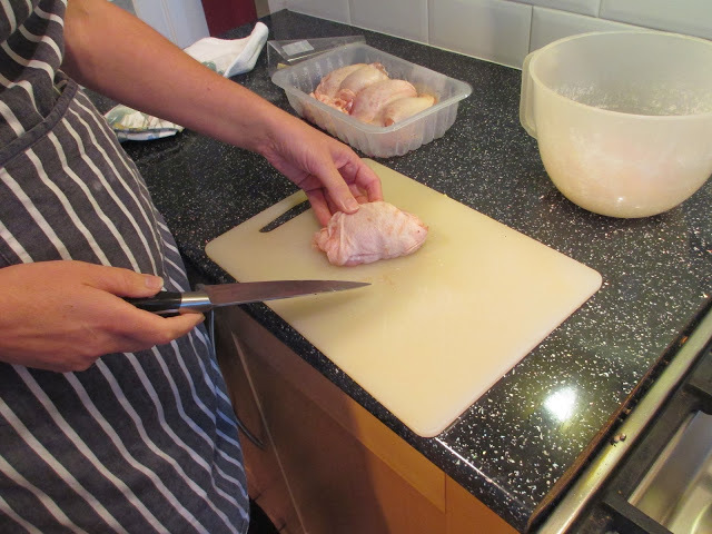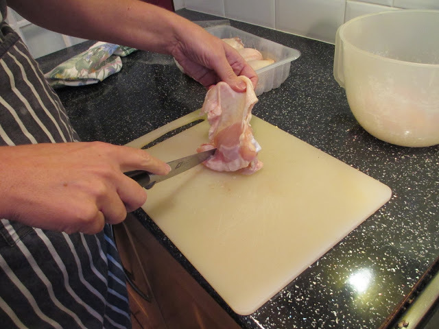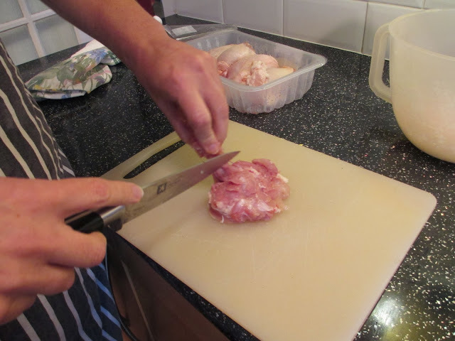I’ll start by sharing how to skin and bone out a chicken thigh. (Chicken thighs can be bought for £1.50 a kilo and that’s a bargain).