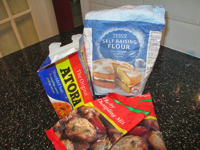 I’ll start by sharing our steak pie. I made a suet pastry. It’s great if you, like me, are not good at making pastry. You will need 8oz of SR flour and 4oz of suet. If you can’t get suet and my American readers don’t seem able to get it, you can use dumpling mix so long as the ingredients state it has suet in it. When you make any pastry, you will need half fat to flour. I also added a pack of dumpling mix to the dry ingredients and stirred that through before I added chilled water to make the dough. There’s no rubbing in, just mix and add water.