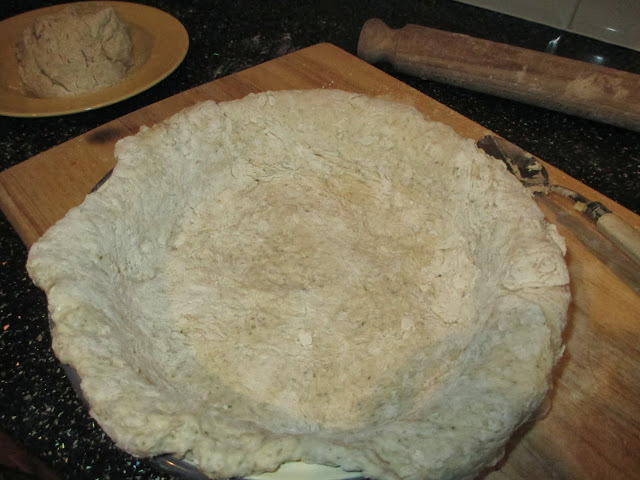 If you’ve never used suet pasty, then you will discover that it is not robust and you have to drape it over your rolling pin and place it carefully in your pie tin. I say tin because mine are enamels tins.