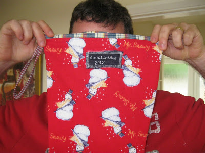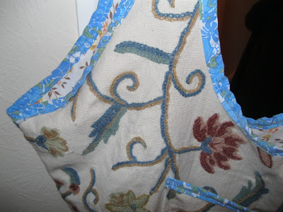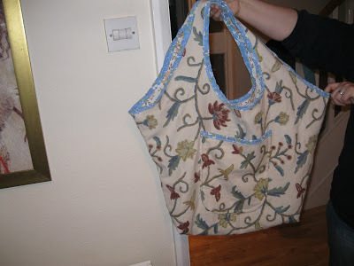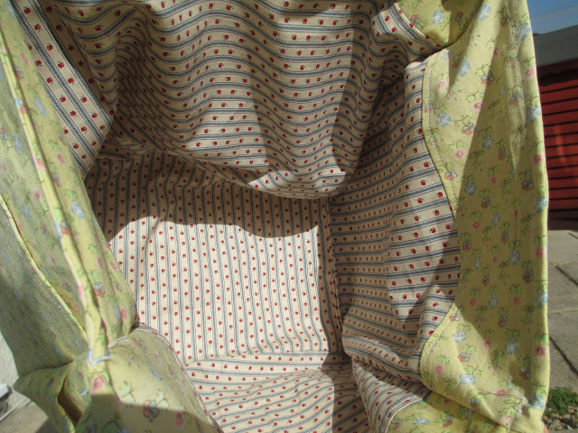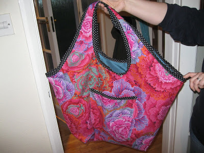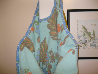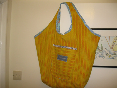 As promised, I told you that as soon as I’d finished, that I would start thinking about Christmas. I’m planning on making a few bags to sell so people can give them away at Christmas and I made my first attempt at a new pattern as a practise. I used old curtain material and it is brighter than it looks in the photos where it appears to be totally washed out. I have a mass of curtain and upholstery fabric which I shall use to make lots of these bags. I have the fabric so they won’t actually cost me anything to make. I shall use this bag for taking books to and from work as it big and roomy and every seam is stitched and then top stitched so it’s very strong.