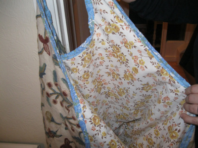It’s a great bag for crafters and quilters to take to workshops with their fabric and notions inside and their tools, scissors and threads in the pockets. It certainly wasn’t easy to make and has taken me the best part of a day to make my first one. I will get quicker as I make more. I would advise anyone to use jumble sale fabric to make your first dress or bag so it doesn’t matter if the seams are lumpy or the pockets don’t sit as you would like them to. I paid 20p for this off cut of fabric at one of the local jumble sales so it really hasn’t cost me much to make it.