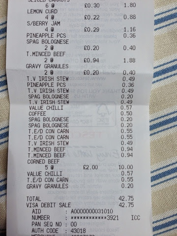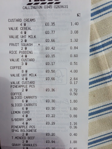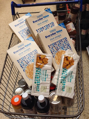 This week, I took my week’s shopping budget to Tesco. I had my shopping list and made sure I spent my entire budget on everything on the list. I was told not to buy tea bags, pasta or baked beans, so I didn’t. I was specifically asked to buy coffee, tinned meat, veg and puddings. A lady commented that just a tiny treat such as a cup of coffee and a biscuit is so much more than the local users of the Foodbank can afford.