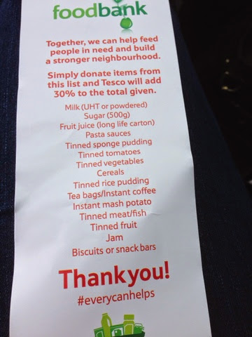 If you have time, get along to Tesco today and add a few items to your trolley as there will be a bonus for the Trussell Trust Foodbank today.