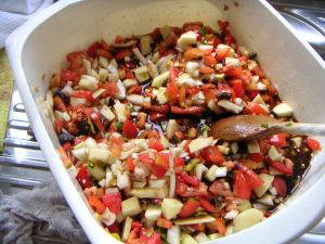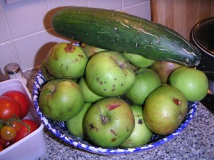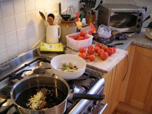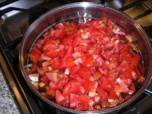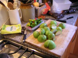 Chop all of the ingredients into the same size chunks, it will give it a better texture. Place in a large saucepan, boil the ingredients together whilst stirring continuously, when it has softened, become chutneyish and sticky………….it’s ready. Pour into hot sterilised jars.