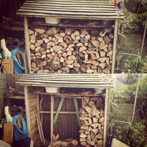 The stones? They were all in the border, I think the previous owner was going for the Bodmin moor stones every where sort of look. I’ll have to pay to take these to the recycling centre as they don’t take stones or soil. The ‘shed’ looks a total mess but I will sort and tidy. I’m trying to find some logs at this time of year so I can stock up whilst I can afford it. No one seems to be selling any.