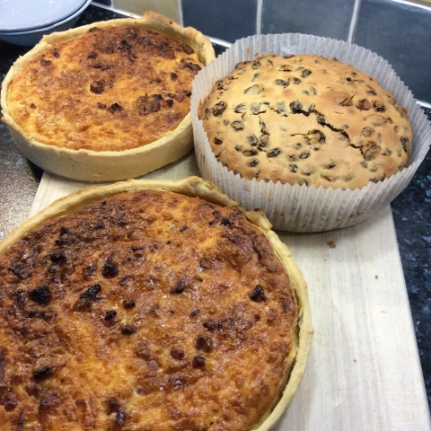 Two quiches. The larger one will be portioned and wrapped for lunches and the smaller one was our Sunday lunch with a bit of salad. I don’t eat the pastry.