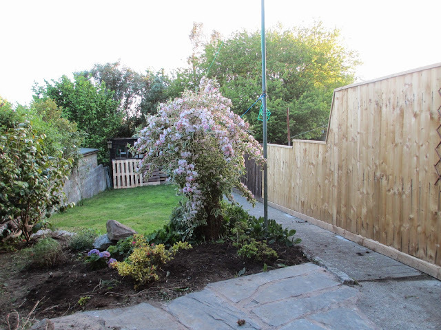 Here’s half my finished border in front of the house. You can see DB’s growing pallet collection at the bottom of the garden, he’ll break them up for fire wood this week. It’s a good job we’ve got them especially as I can’t find any logs to buy. The pink flowering shrub has had a tidy up and been pruned back. I watched Gardener’s World and remembered the advice that if you prune hard when the Chelsea flower show is on, that there’s plenty of growing season left for it to come back to full strength.