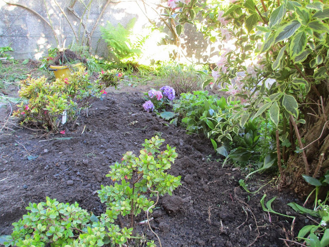 I dug up plants that were in full sun and not thriving and I’ve planted them somewhere that gets some shade. I moved a lavender that was too near the wall and put that in full sun. I’ve planted a tiny hydrangea that I bought a few weeks ago for a few pounds from Lidl and hope it makes it.