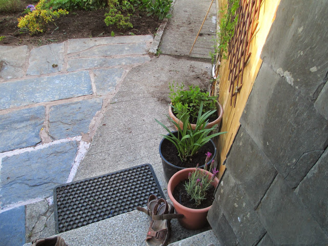 We’ve been gardening on and off for a few days. Not solidly but popping out to do a bit more when the mood took us. We’ve cleaned the house, laundered, ironed, put away and read and put our feet up in between. A proper bank holiday weekend. We live in a terrace of thirteen slate hung cottages with tiny gardens and the neighbours have been out cutting the lawn, or I could hear them chatting with friends in the sun. It’s been beautifully warm here today.