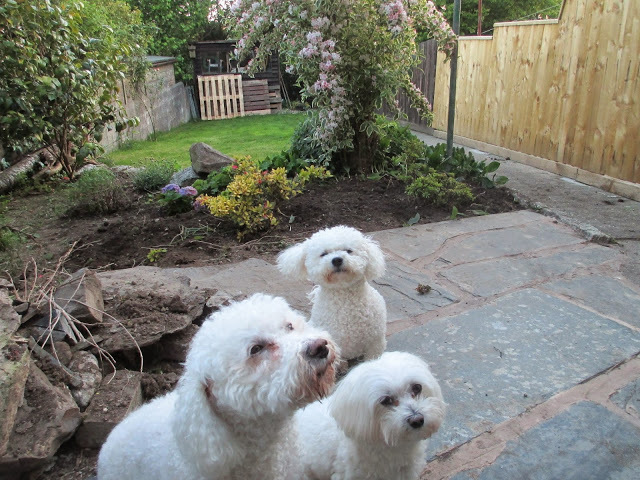 I’ve had this trio helping me in the garden all day. They are very good at barking instructions but not a lot of help with digging! (Dolly Knockers at the back, front left Scruffy/AKA Ronnie Barker and to his right is Bobby Dazzler. The garden team, special skills: using the kneeler as a pillow, chewing the trowel handle and lying in dirt when they’ve just had a bath)