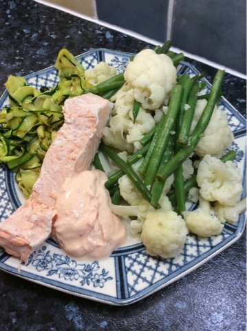 Lots of Aldi natural low fat yoghurt with frozen fruit, that I leave to defrost - cheap and simple. Plenty of salad and steamed vegetables, lots of lean meat and fish and before you ask, I’ve no chance of keeping this to a pound a meal and have upped my food costs to £3 a day. I’m snacking on cheap carrots and I’m steering clear of bread, pasta and potatoes and just eating clean and healthy food.