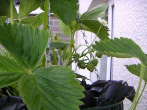 My homemade upside down tomato planters are faring well and the plants are covered in flowers and I hope for some toms in the near future. The rest of the garden is a bit hit and miss. My Bramley apple and Victoria plum trees have doubled their yield since last year and there are two fruits on both of them!!! However, the strawberries in the hanging basket are thriving and I keep picking strawberries; it’s lovely to leave them there until they are completely ripe and eat them straight off the plant!