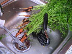 The carrots are bushy and need thinning again!
